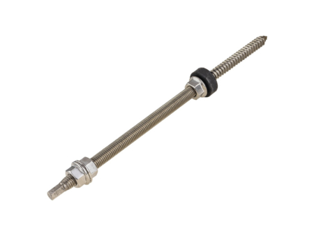 Complete M10x200 double-threaded screw, used for mounting photovoltaic systems on metal roof tiles. The set includes: double-threaded screw, three flange nuts, and an EPDM gasket.